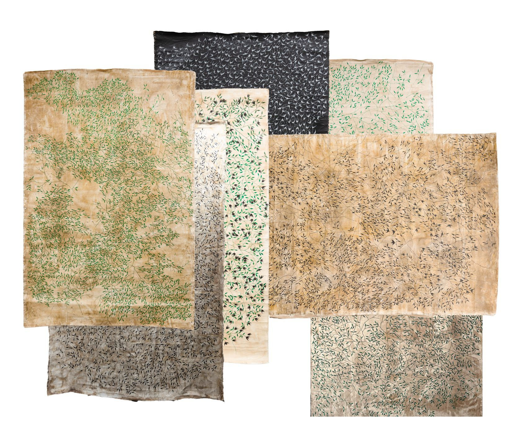 The figure of the عنقاء [‘anqaa’] or phoenix, hovers over Limen. From its ashes branch endless roots and leaves. A creature of everlasting renewal in Assyrian mythology, the ‘anqaa’ is an age-old protagonist of ancient Egyptian rituals of the annual passage of migratory birds through the city of the sun (‘An/Heliopolis). In Limen, fragile yet durable materials link ecological degradation to human histories of displacement and resilience.